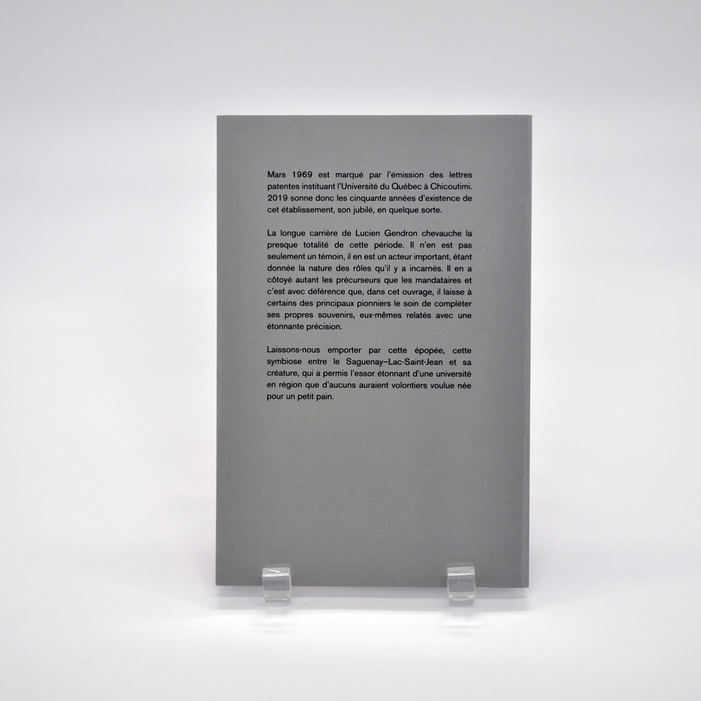 Proposé à 12 $, ce livre usagé constitue une ressource précieuse pour les chercheurs, les passionnés d’histoire régionale et tous ceux qui s’intéressent à l’éducation universitaire au Québec. Il offre un récit clair et vivant des cinquante premières années de l’UQAC et met en valeur la mémoire collective de l’institution et de ses acteurs.
