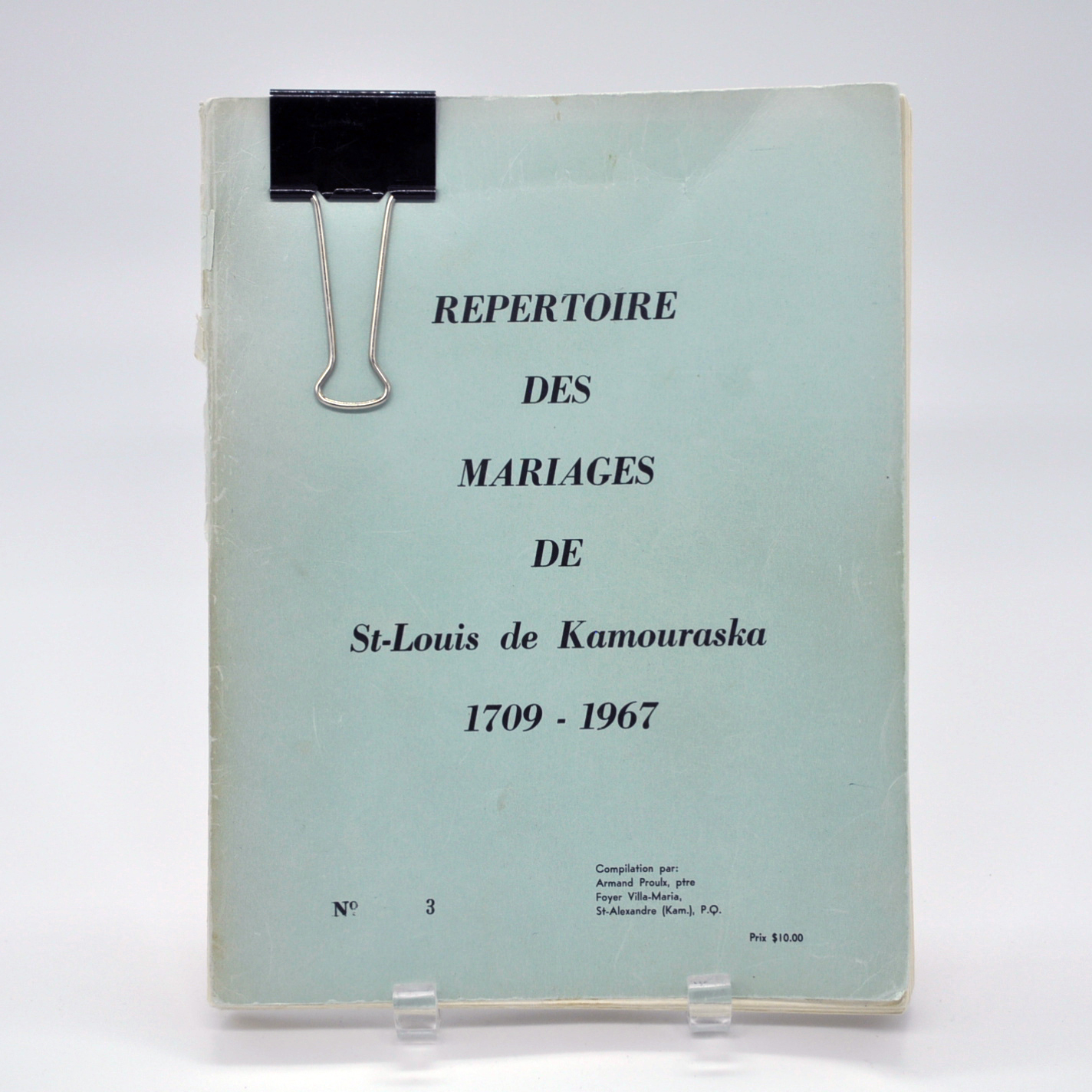 Ce répertoire de l’abbé Armand Proulx retrace les mariages célébrés à Saint-Louis de Kamouraska de 1709 à 1967. L’ouvrage constitue une ressource précieuse pour les chercheurs en généalogie et pour les passionnés d’histoire locale. Il permet de suivre l’évolution des familles et des alliances dans cette paroisse sur plus de deux siècles et demi.